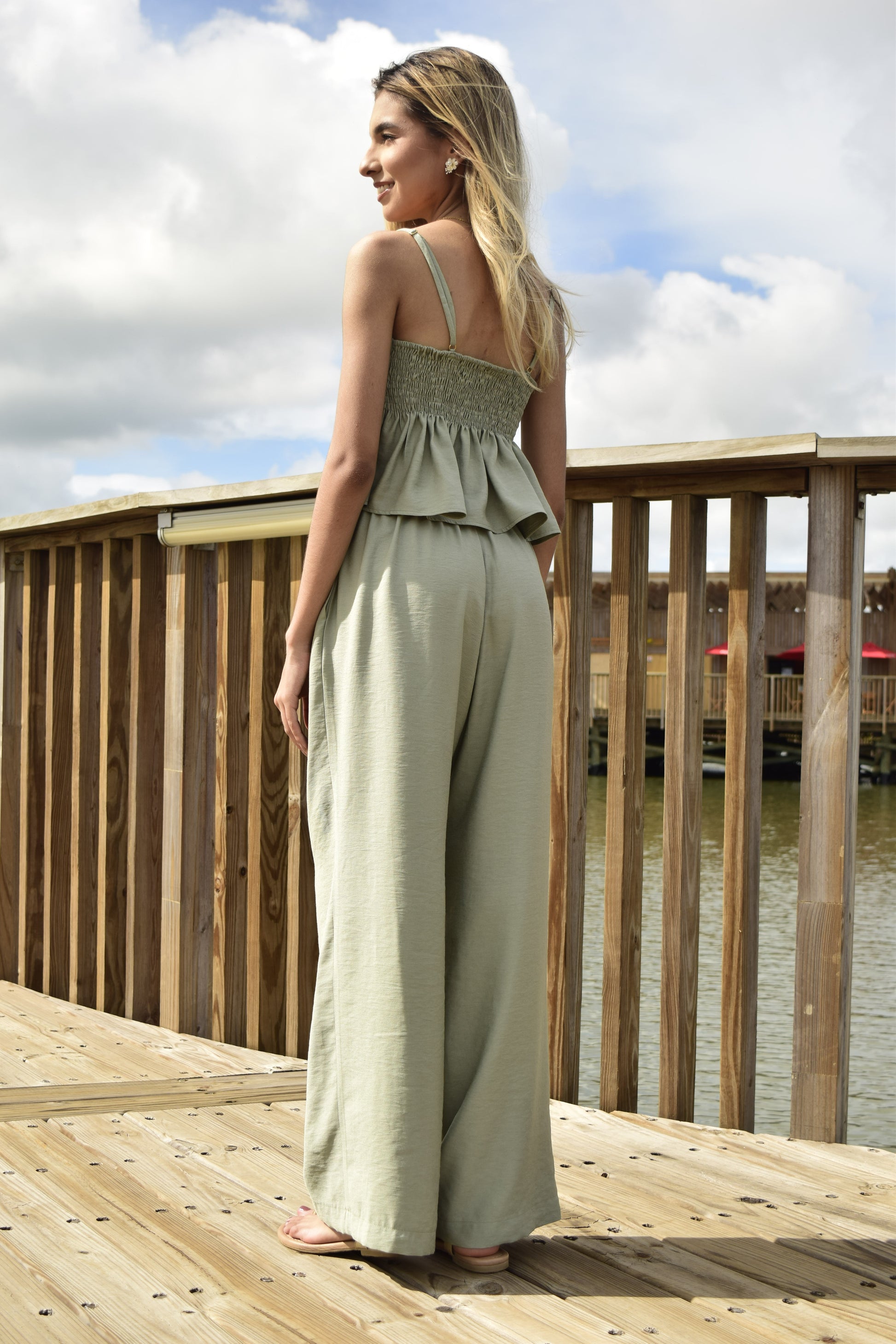 Mantiene la promesa de confort y estilo, con un corte wide leg (pierna ancha) y tiro alto, garantizando una caída ligera y fluida al caminar
